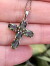 繊細にカットされた稀少なモルダバイトがクロスにあしらわれたペンダントトップです。