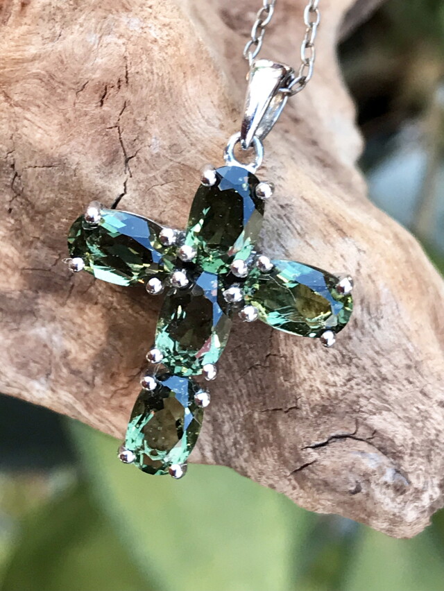 モルダバイト・クロス・ペンダントトップ MLD005