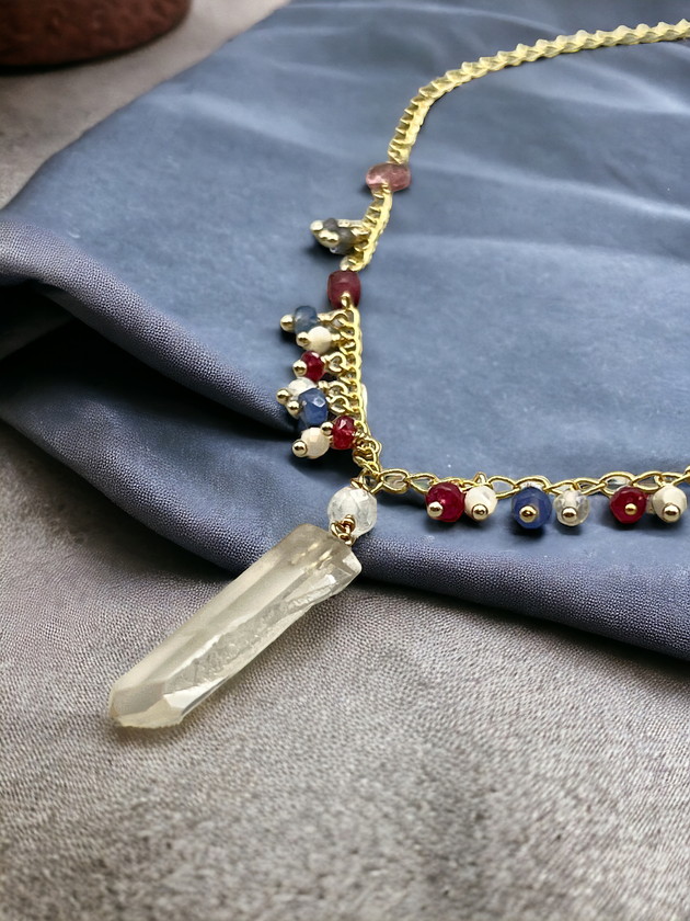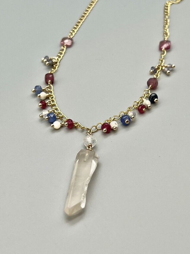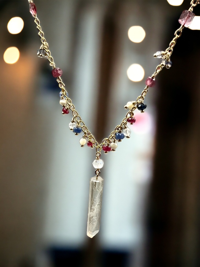 使用クリスタル:ピンクレムリアン・ジュエリーポイント、ルビー、マザーオブパール、オーロラクォーツ、サファイア、トルマリン、アイオライト、ガーネット