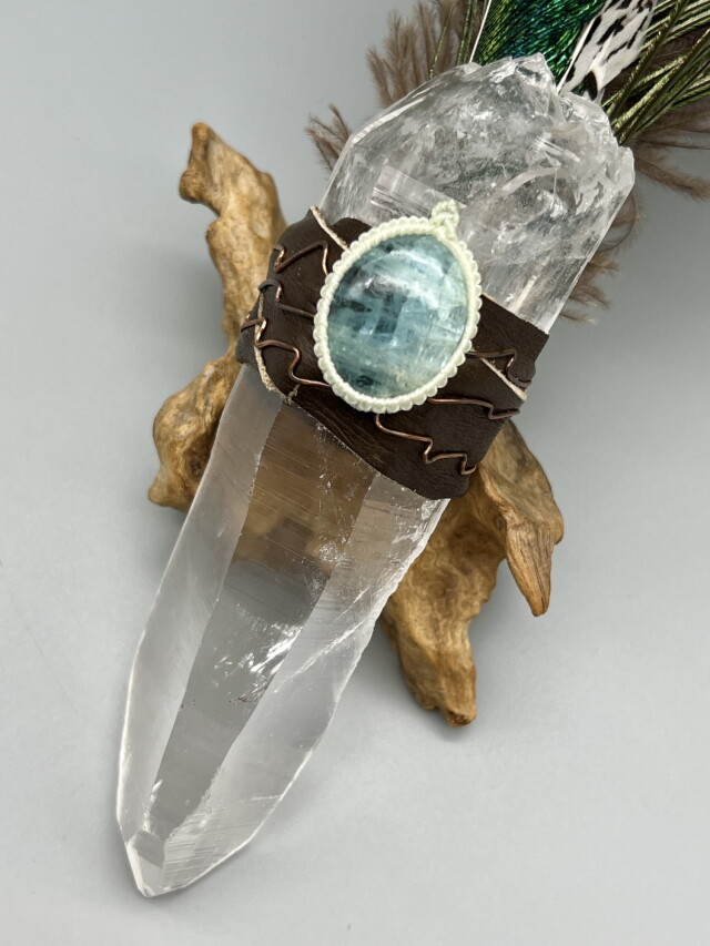 マテリアルズ:バイア・アレグリ産レムリアンシード/アクアマリン/ピーコックほか羽/コッパー/鹿革