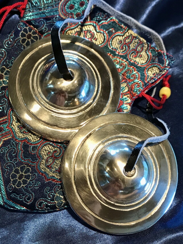 ヒマラヤの寺院にて、お坊さんだけが使用していた珍しい7メタル製ティンシャ(チベタンベル)です。